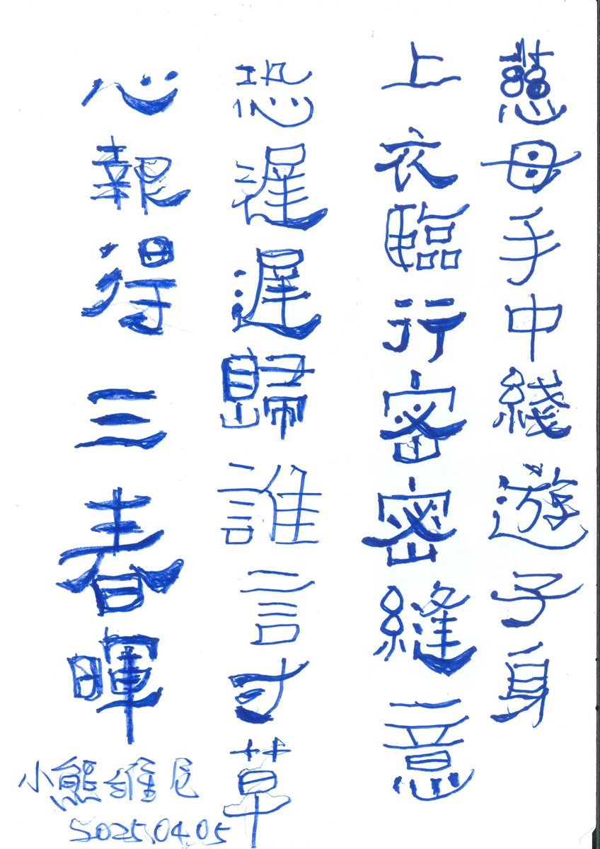 【大象】、【飛天象】、【奇幻】作者:Mary (115.03) 田可宜-大象-(114_10).jpeg 圖片下載 田可宜-飛天象-(114_10).jpeg 圖片下載 田可宜-奇幻-(114_10).jpeg 圖片下載 【大樹】、【每日活水】作者:Mary (115.03) Mary-大樹-(115_02)(1) 圖片下載 Mary-每日活水-(115_02)(1) 圖片下載 【台北動物方程式】、【我最想法的國家-星國】、【環遊世界我最想去的國家-法國】作者:達哥 (115.03) 達哥-台北動物方程式-(115_03) 圖片下載 達哥-我最想法的國家-星國-(115_02) 圖片下載 達哥-環遊世界我最想去的國家-法國-(115_02) 圖片下載 【秋天的下午】、【下午時刻】、【鄉村生活】作者:瑩 (114.12) 瑩-秋天的下午-(114_11) 圖片下載 瑩-下午時刻-(114_11) 圖片下載 瑩-鄉村生活-(114_11) 圖片下載 【風吹青草地】、【推輪椅在溪邊】、【歡喜慶生樂】作者:淑 (114.12) 淑-風吹青草地-(114_11) 圖片下載 淑-推輪椅在溪邊-(114_11) 圖片下載 淑-歡喜慶生樂-(114_11) 圖片下載 【結交朋友好開心】、【在樹下的男孩】作者:芬 (114.11) 芬-結交朋友好開心-(114_11) 圖片下載 芬-在樹下的男孩-(114_11) 圖片下載 【我與好朋友】、【夢幻美少女】、【漫畫美少女】作者:安 (114.11) 安-我與好朋友-(114_11) 圖片下載 安-夢幻美少女-(114_11) 圖片下載 安-漫畫美少女-(114_11) 圖片下載 【漢堡與太陽】、【兩小無猜】、【柳葉在飛】作者:禪 (114.12) 禪-漢堡與太陽-(114_11) 圖片下載 禪-兩小無猜-(114_11) 圖片下載 禪-柳葉在飛-(114_11) 圖片下載 【日出】、【小猫陪伴小男孩】、【熊貓拿著花】作者:榮 (114.12) 榮-日出-(114_11) 圖片下載 榮-小猫陪伴小男孩-(114_11) 圖片下載 榮-熊貓拿著花-(114_11) 圖片下載 【揚船而行】、【小叮噹撐傘】作者:松- (114.12) 松-揚船而行-(114_11) 圖片下載 松-小叮噹撐傘-(114_11) 圖片下載 【照鏡子】作者:進- (114.12) 進-照鏡子-(114_11) 圖片下載 【小女孩休息】、【鄉村即景】作者:正(114.12) 正-小女孩休息-(114_12) 圖片下載 正-鄉村即景-(114_12) 圖片下載 【日照鄉村】作者:玉- (114.12) 玉-日照鄉村-(114_12) 圖片下載 【生氣的狗】、【要吃午餐的豬】、【豬與狗會合】作者:Alice-(114.12) Alice-生氣的狗-(114_09)(2) 圖片下載 Alice-要吃午餐的豬-(114_09)(1) 圖片下載 Alice-豬與狗會合-(114_09)(2) 圖片下載 【緣色大自然】、【藍色世界】作者:佩昀 (114.12) 佩昀-緣色大自然-(114_10) 圖片下載 佩昀-藍色世界-(114_10) 圖片下載 【小豬】作者:易璉- (114.12) 易璉-小豬-(114_10) 圖片下載 【翠樹】作者:cc- (114.10) cc-翠樹-(114_10) 圖片下載 【兔子搗藥】、【躱在樹林中】、【海中動物】作者:義 (114.11) 義-兔子搗藥-(114_11) 圖片下載 義-躱在樹林中-(114_11) 圖片下載 義-海中動物-(114_11) 圖片下載 【大自然】、【小女孩休息】作者:生 (114.11) 生-大自然-(114_12) 圖片下載 生-小女孩休息-(114_12) 圖片下載 【春風】作者:Ivy- (114.12) Ivy-春風-(114_03) 圖片下載 【多多龍】作者:陳今修- (114.12) 陳今修-多多龍-(114_11) 圖片下載 【小妹妹】作者:黃心琳- (114.12) 黃心琳-小妹妹-(114_11) 圖片下載 【水果拼盤】、【山中小屋】、【流水旁的小屋】作者:雅琴 (114.12) 雅琴-水果拼盤-(114_08) 圖片下載 雅琴-山中小屋-(114_11) 圖片下載 雅琴-流水旁的小屋-(114_11) 圖片下載 【蟲蟲部隊】作者:胡冠中- (114.12) 胡冠中-蟲蟲部隊-(114_11) 圖片下載 【我的自畫像】作者:邱梓孟- (114.12) 邱梓孟-我的自畫像-(114_11)(1) 圖片下載 【兔子兔子亮晶晶】作者:周芷伶- (114.12) 周芷伶-兔子兔子亮晶晶-(114_11).jpeg 圖片下載 【水果網套(兔子)】作者:吳慧貞- (114.12) 吳慧貞-水果網套(兔子)-(114_11) 圖片下載 【圓的變化】、【禪繞畫】作者:LLL (114.12) LLL-圓的變化-(114_10) 圖片下載 LLL-禪繞畫-(114_10) 圖片下載 【Snoopy跳舞】、【釣魚】作者:均 (114.12) 均-Snoopy跳舞-(114_11) 圖片下載 均-釣魚-(114_11) 圖片下載 【阿尼】、【海底世界】、【藥丸子】作者:惠嵐 (114.12) 惠嵐-阿尼-(114_11).jpeg 圖片下載 惠嵐-海底世界-(114_11) 圖片下載 惠嵐-藥丸子-(114_11).jpeg 圖片下載 【曼荼羅】、【戴帽子的女人】、【蟹肉撕貼畫】作者:佳穎- (114.12) 佳穎-曼荼羅-(114_11) 圖片下載 佳穎-戴帽子的女人-(114_11) 圖片下載 佳穎-蟹肉撕貼畫-(114_11) 圖片下載 【孔雀鑽石貼畫】、【手工花卉鑽石畫】、【雲中花屋鑽石貼】作者:寶儀 (114.12) 寶儀-孔雀鑽石貼畫-(114_11) 圖片下載 寶儀-手工花卉鑽石畫-(114_11) 圖片下載 寶儀-雲中花屋鑽石貼-(114_11) 圖片下載 【女子跳彩虹舞】、【草莓】、【蛇年平安】作者: 傑 (114.05) 傑-女子跳彩虹舞-(114_11) 圖片下載 傑-草莓-(114_11) 圖片下載 傑-蛇年平安-(114_11) 圖片下載 【小天使】作者:史豔文- (114.12) 史豔文-小天使-(114_09) 圖片下載 【憫農詩】、【登鸛雀樓】、【慈濟靜思語】作者達哥 (114.12) 達哥-憫農詩、登鸛雀樓、慈濟靜思語-(114_09)(1) 圖片下載 【發射】、【摩天輪】作者:小宇 (114.11) 小宇-發射-(114_06) 圖片下載 小宇-摩天輪-(114_06).jpeg 圖片下載 【山水之間】作者:李主恩- (114.11) 李主恩-山水之間-(114_10) 圖片下載 【DIY缷裝乳和隔離霜】、【和諧粉彩創作】作者:哈欠 (114.10) 哈欠-DIY缷裝乳和隔離霜-(114_10) 圖片下載 哈欠-和諧粉彩創作-(114_10)(1) 圖片下載 【藍天白雲青山綠樹】作者:Joseph- (114.11) Joseph-藍天白雲青山綠樹-(114_10).docx 檔案下載 【海南雞飯】作者:sea- (114.11) sea-海南雞飯-(114_09)(1).png 圖